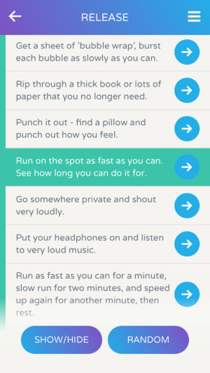 Calm Harm provides tasks that help you resist or manage the urge to self harm.