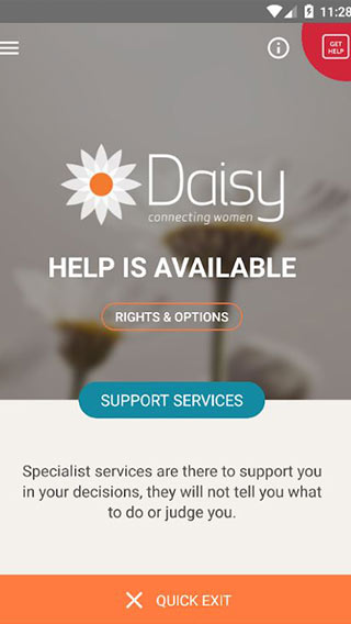 Daisy is an app designed to help women who have been affected by domestic violence, family violence and sexual assault. Daisy connects women to services that can help in these situations.