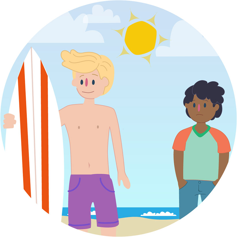 I've always had feelings for boys but I didn't want to tell anyone. I thought people would think differently about me. One time, I really liked this surfer guy, he had blond hair and blue eyes but my friend was going out with him. I wanted him but I knew it would be the wrong thing to do