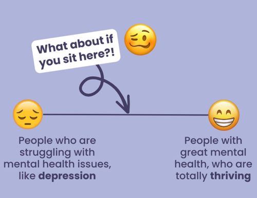 Spectrum on mental health with the text - people who are struggling with mental health issues like depression - What about if you sit here and People with great mental health who are totally thriving