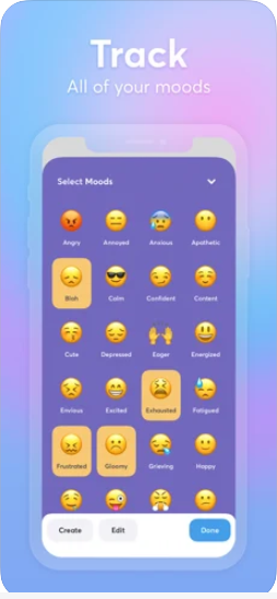 Mood App allows you to communicate with other users and has a customisable journal and mood tracking function. The app doesn’t seem to address anxiety and depression or provide resources to educate others about mental health as advertised.
